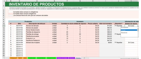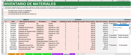 ✅ Plantilla de inventario para organizar y realizar un seguimiento de sus inventarios de materiales y productos: los artículos que necesiten reabastecimiento se etiquetarán automáticamente.