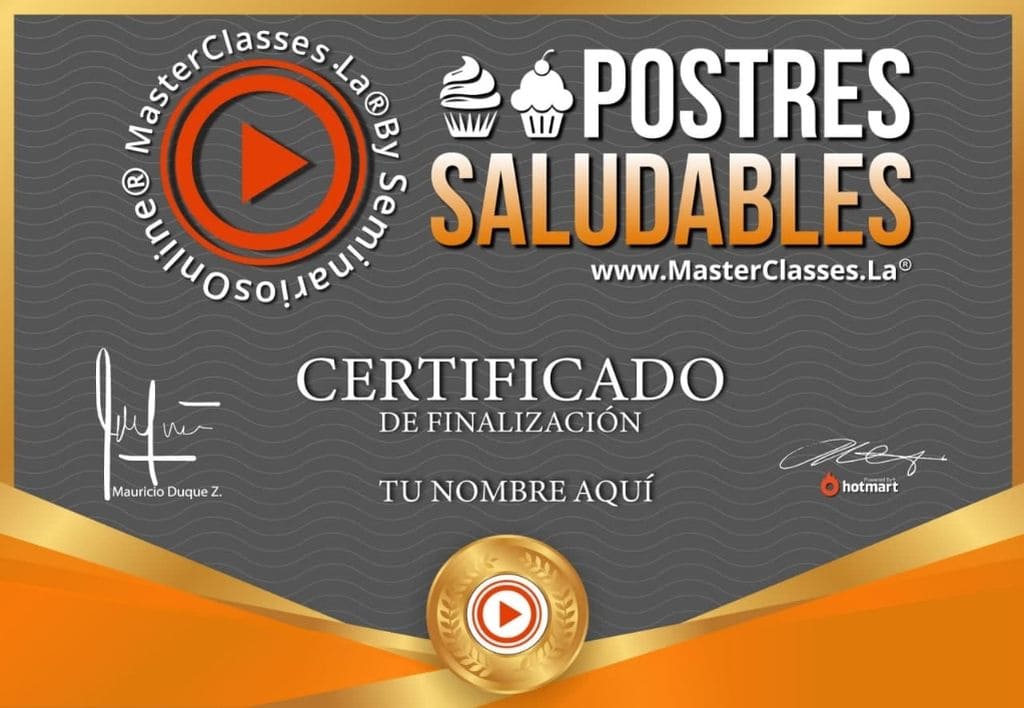 ✅Obtener un Certificado de Participación: Al finalizar el curso, recibirás un certificado que avala tus conocimientos y habilidades en la preparación de postres saludables, aumentando tu credibilidad y confianza en el mercado.