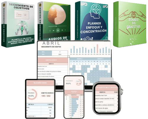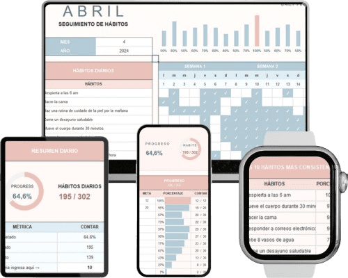 Inmediatamente después de tu compra, recibirás un correo electronico con el acceso a tus plantillas de excel de seguimiento de hábitos y objetivos y los bonos para que las puedas comenzar a utilizar ¡HOY MISMO!